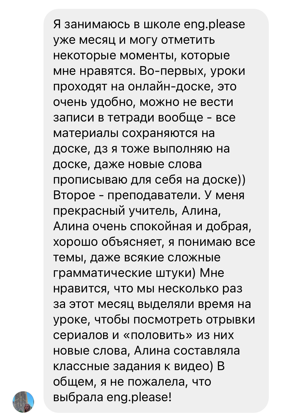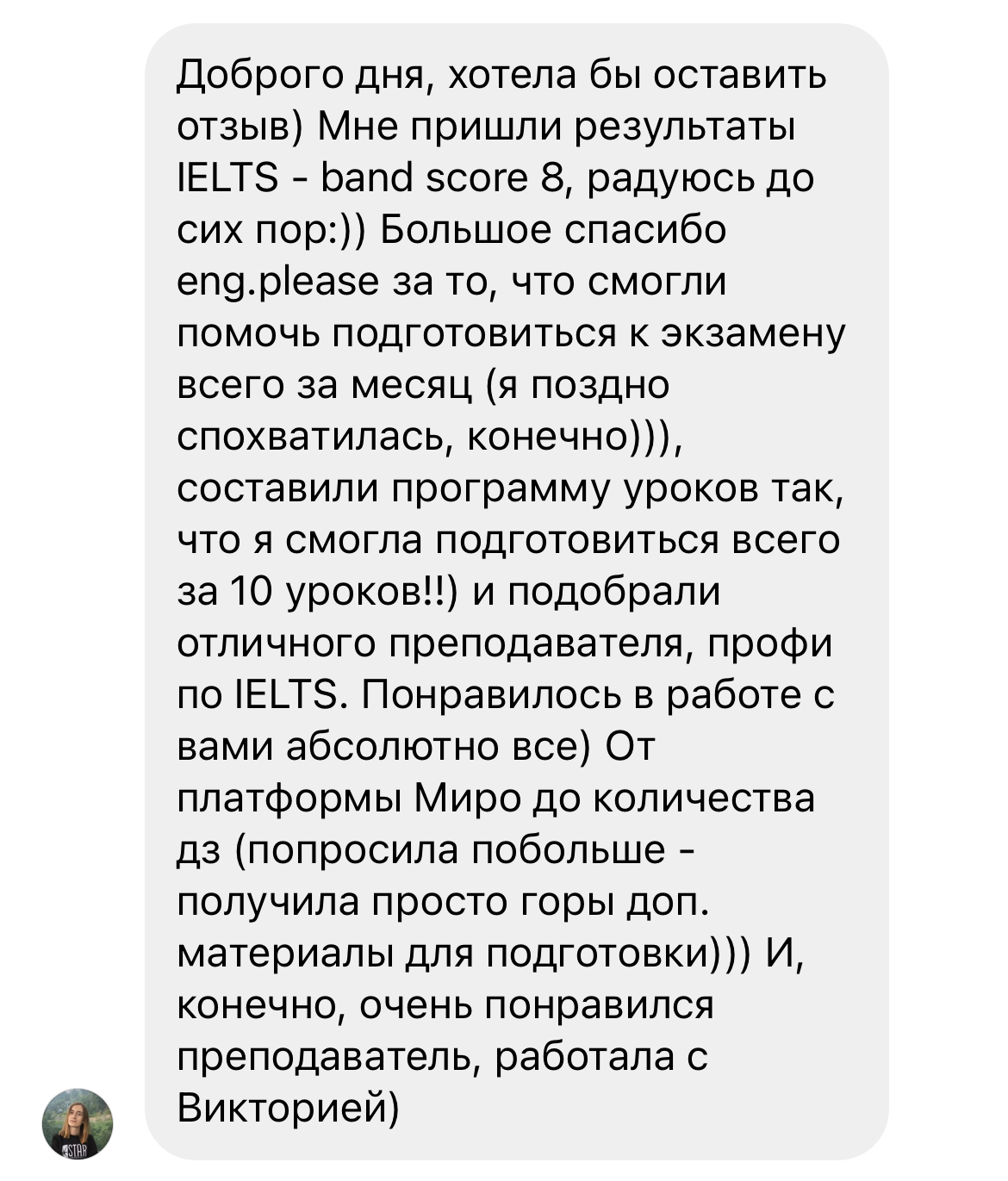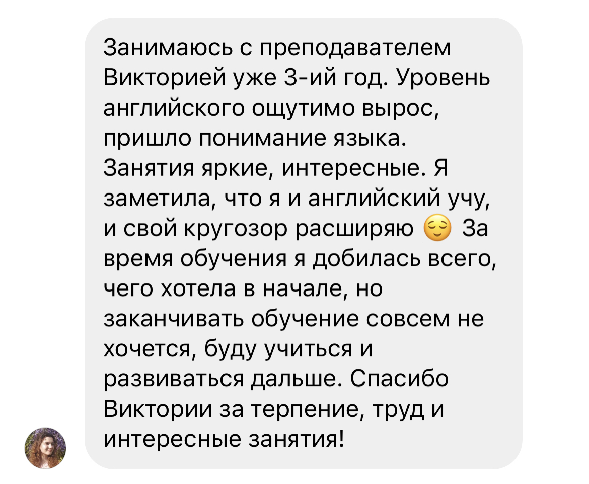 Преподаватель со стажем 7 лет и руководитель школы eng.please. Имеет зарубежное лингвистическое образование и уровень английского C1 (подтверждено экзаменом IELTS). Ведёт блог в инстаграм про школу.